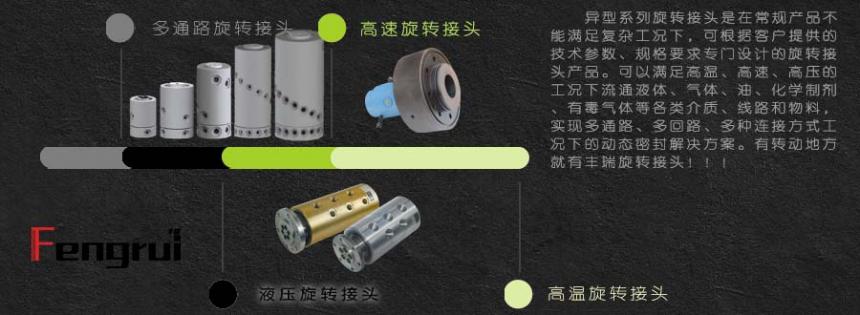 非標旋轉接頭:高壓旋轉接頭、高速旋轉接頭、高溫旋轉接頭、多通路旋轉接頭(可以根據流通介質、技術參數、實際工況和連接方式結合實際情況綜合分析,選擇匹配適用的密封結構、密封件組合和使用材質進行非標異型設計,補足標準旋轉接頭在更為復雜的技術參數下的實際應用,可以實現在高溫、高壓、高轉速的情況下多種、多通路、多標準的流通水、氣、油和物料的動態密封,提高旋轉接頭的抗腐蝕性、抗疲勞性和適用性)